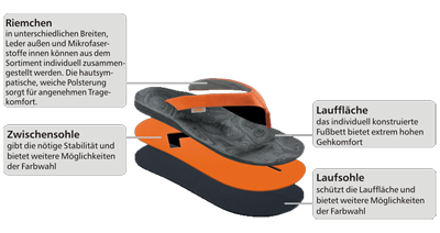 - maßgefertigte Zehenstegsandalen mit anatomischem Fußbett